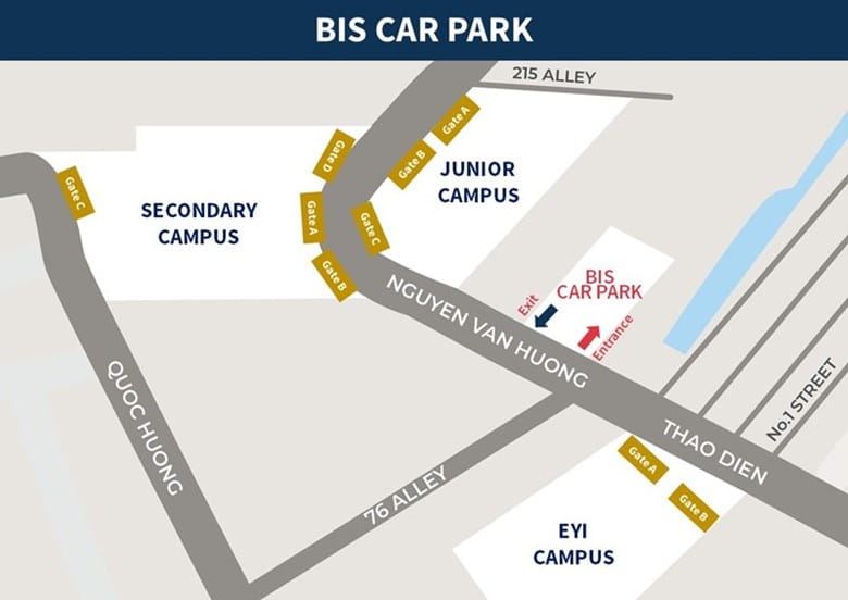 The car park is conveniently located on Nguyen Van Huong between all 3 campuses. Secondary students can walk to the car park, avoiding the traffic congestion at the School gates. By using the car park we can all play our part in keeping our community safe.