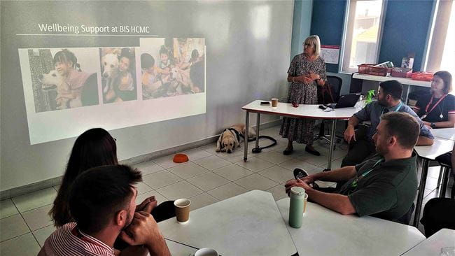 In the gap between coffee and the final workshops, we were heartwarmed by the short presentation by Clare Bridgewater, a Learning Support Teacher at BIS HCMC, and her wellbeing dog, Percy. Clare spoke of the success she has seen with the introduction of Percy into the wellbeing realm of a busy school and with certain students who have greatly benefitted. It is fair to say, there wasn’t a delegate present who was not trying to work out how to spirit Percy away and take him home.