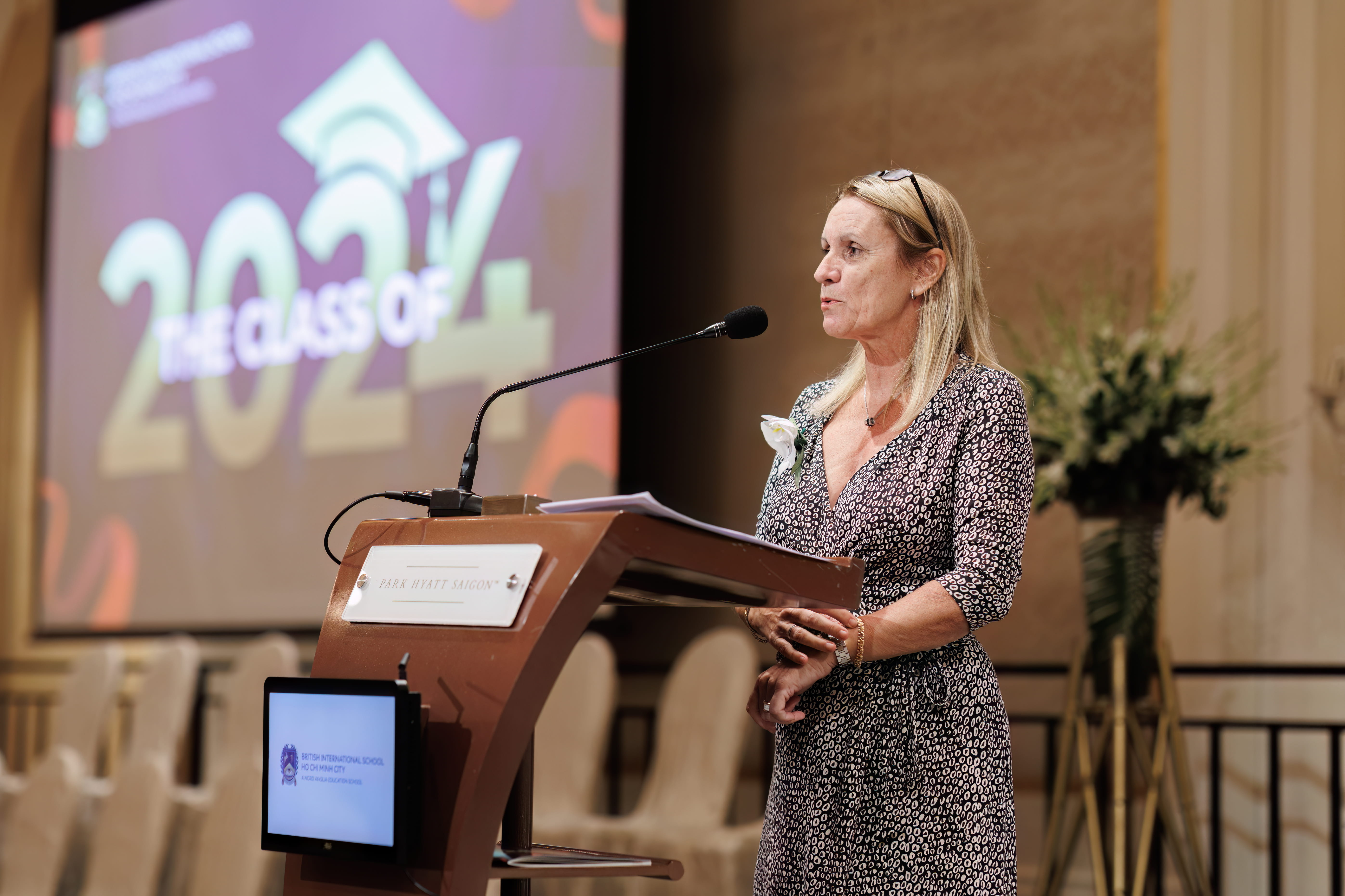 Of course, this sentiment resonated throughout the ceremony, reflecting a truth that transcends generations at this stage in life. This uncertainty, however, isn't something to fear, but rather an opportunity to embrace. You don’t have to have it all figured out. Emily Hamblin, UK Consul General shared her own experiences with uncertainty, how she herself felt pressure after the IB and didn’t know what she wanted to do. She shared that over the years she has changed her mind several times, from an accountant to working for an NGO in Nepal and now she stands before us representing the UK in HCMC, with many decisions yet to come in her career. Her story is a powerful testament to the fact that life is a continuous exploration, one that doesn't require a pre-written script. The key, lies in resilience, perseverance, and unwavering confidence – qualities instilled within every BIS student.
