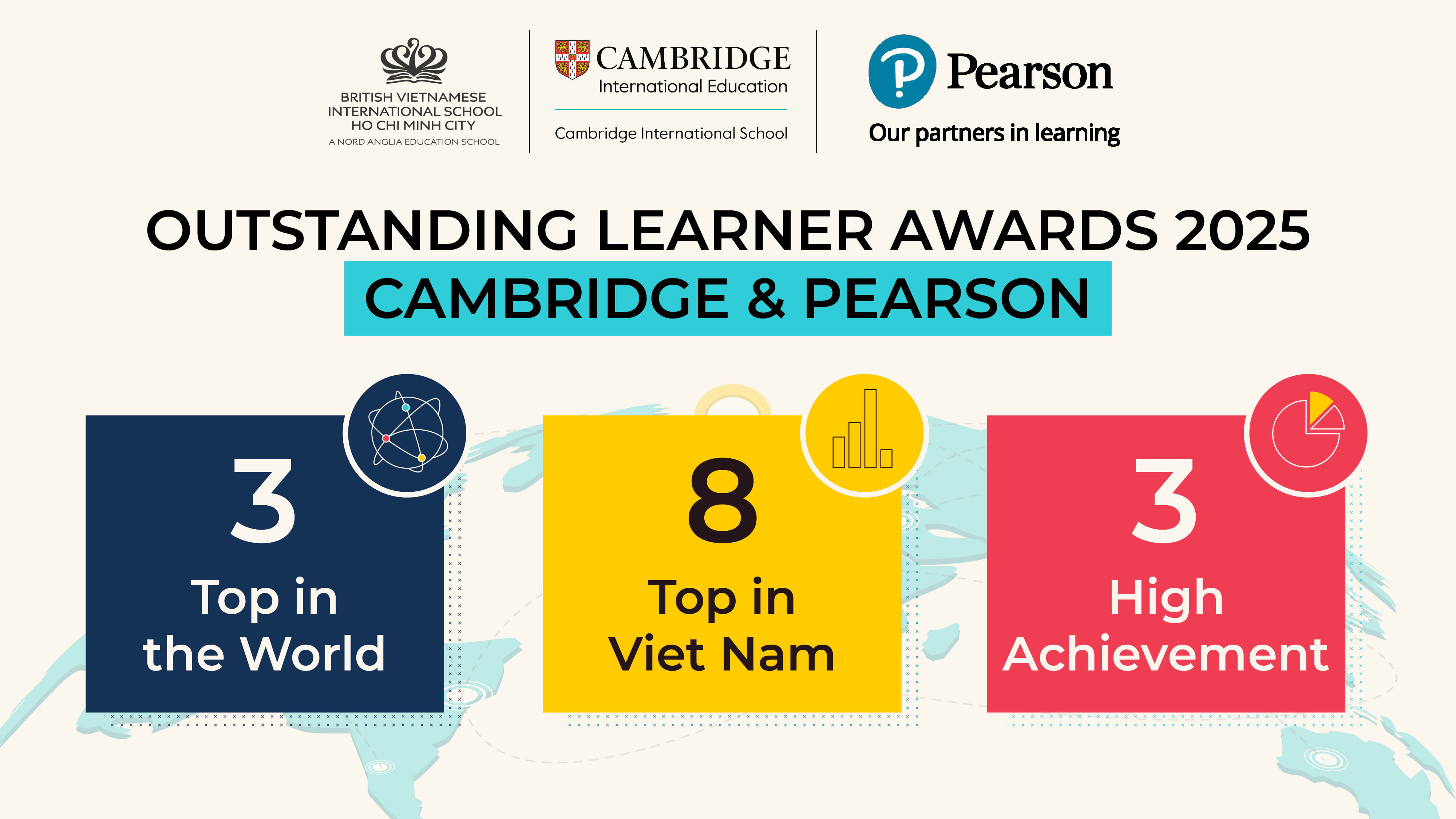Twelve Secondary students from the British Vietnamese International School (BVIS) Ho Chi Minh City have been awarded Outstanding Learner Awards by Cambridge and Pearson, based on their results in the international examinations for the 2024–2025 academic year. This impressive achievement continues to affirm BVIS’s exceptional educational quality within Vietnam’s international school system.